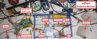 Here's the story of my new multi-mode QRP radio beacon built around the Arduino - or, more properly, around my homebrew clone, the WotduinoTM.I ended the post on my Arduino DDS shield with the words "perhaps I'll use the wait to start writing some Wotduino beacon code". Well, despite more than the usual volume of traffic of distractions keeping me away from leisure activities over the past few weeks, I've managed to steal some moments to keep me (nearly) sane...